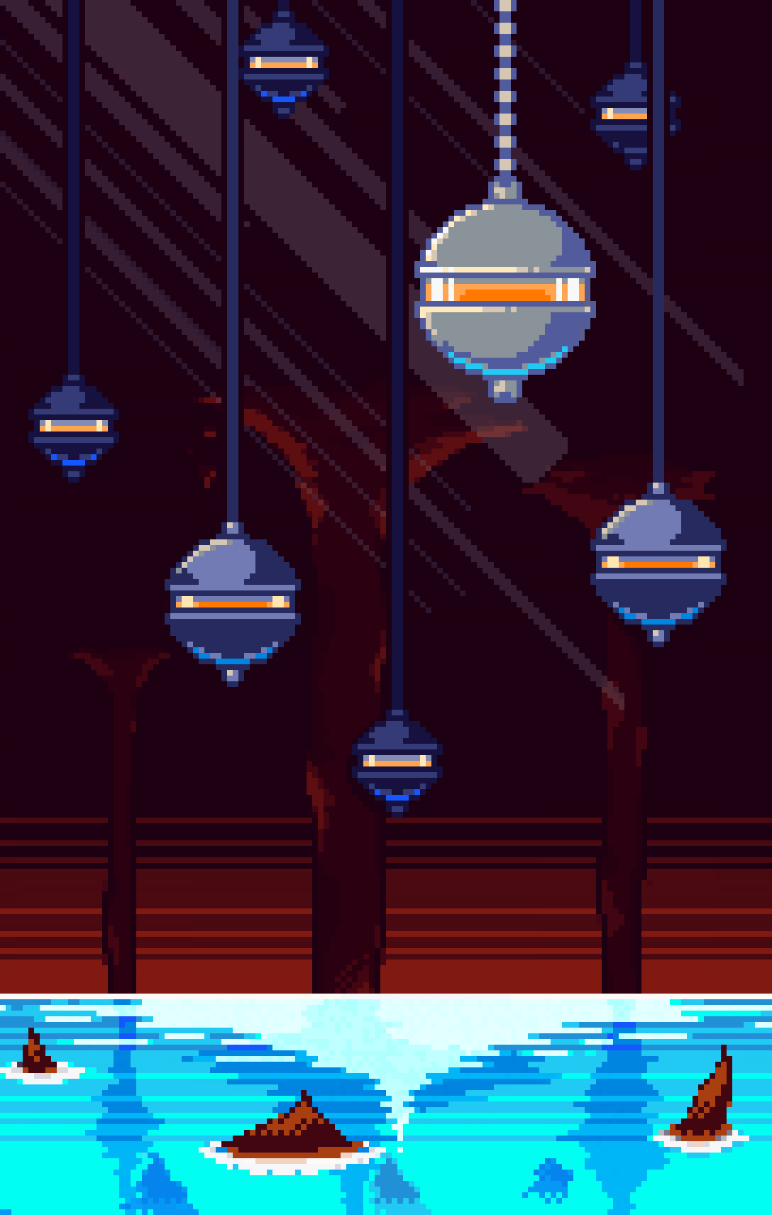 This looks super good, I love the rim lighting on the lanterns, the shadows in the water look really nice too, it reminds me a lot of your game.